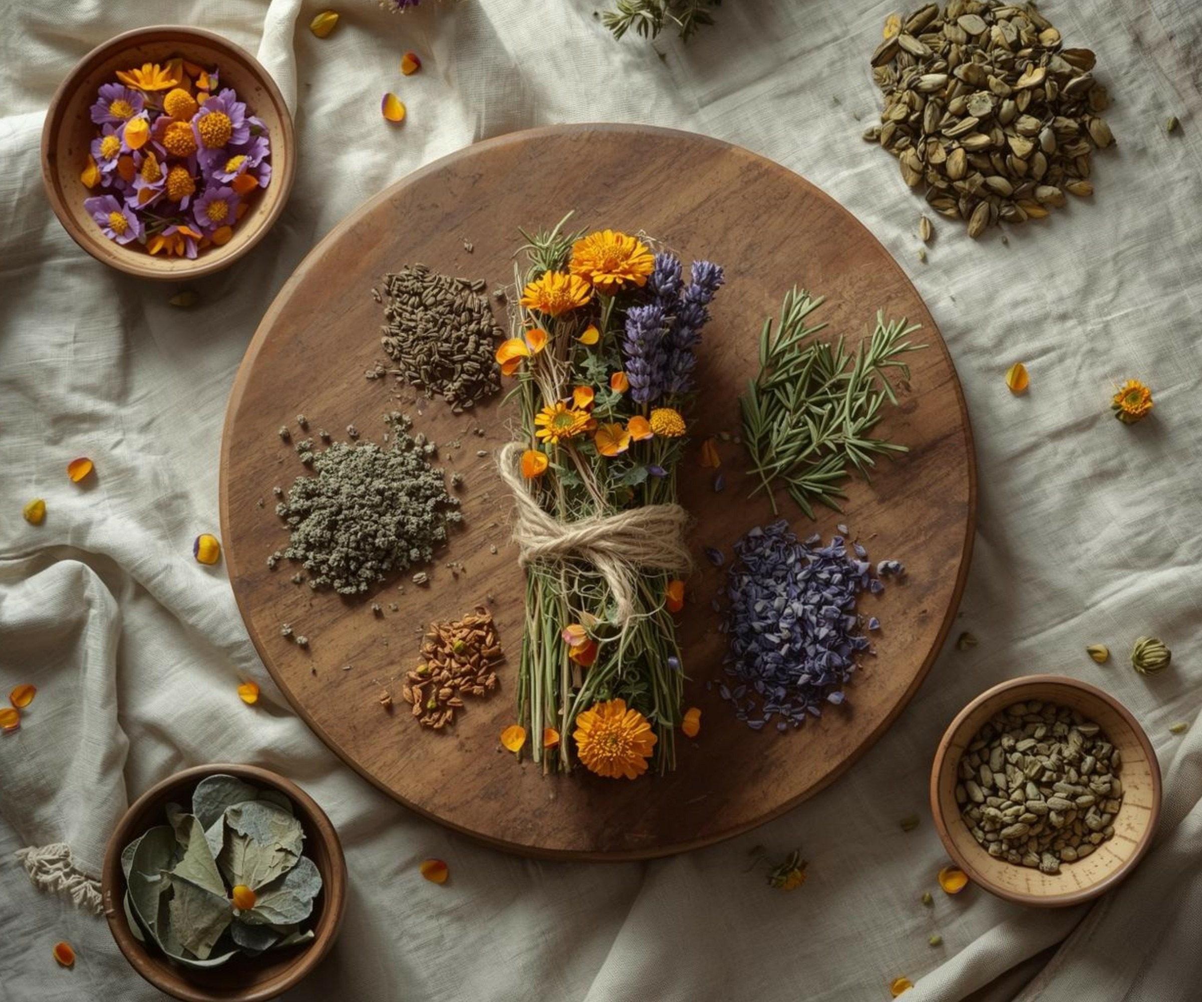 🌿 Auswahl: heimische Kräuter sammeln oder getrocknete Räucherkräuter nutzen