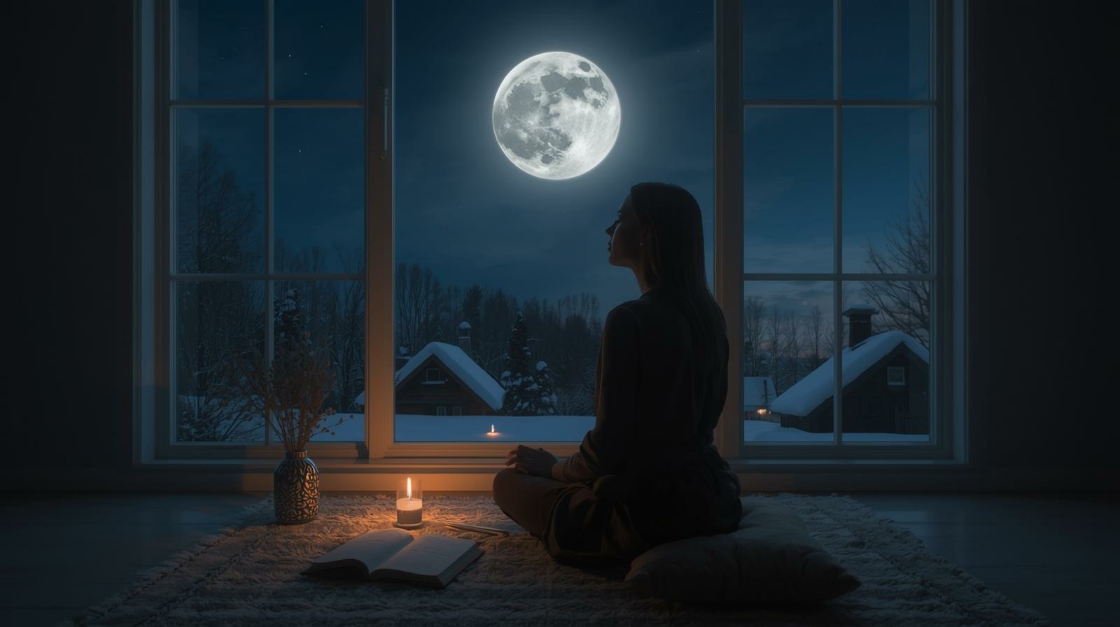 - Suche dir einen ruhigen Ort drinnen oder draußen im Licht des Vollmonds im Januar.